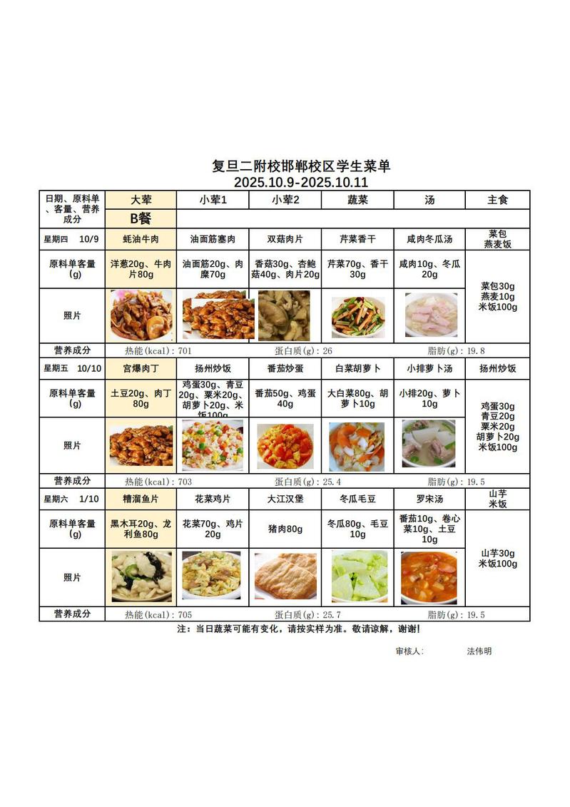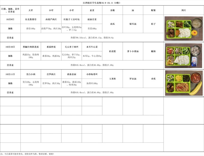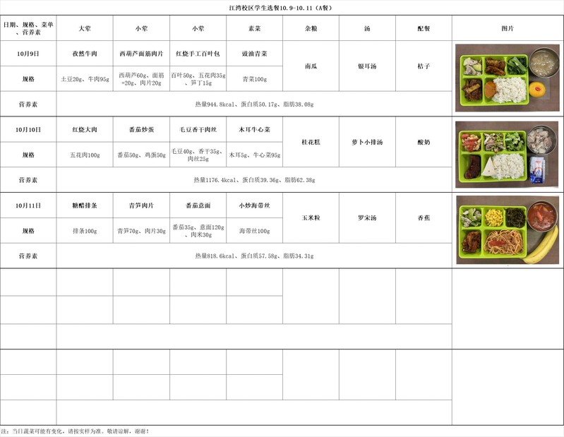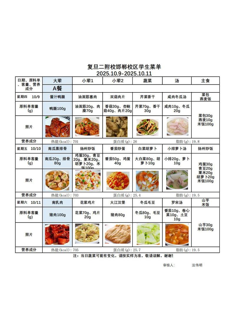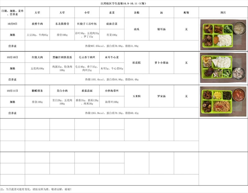 2025学年第一学期第6周菜单(20251009-20251011)