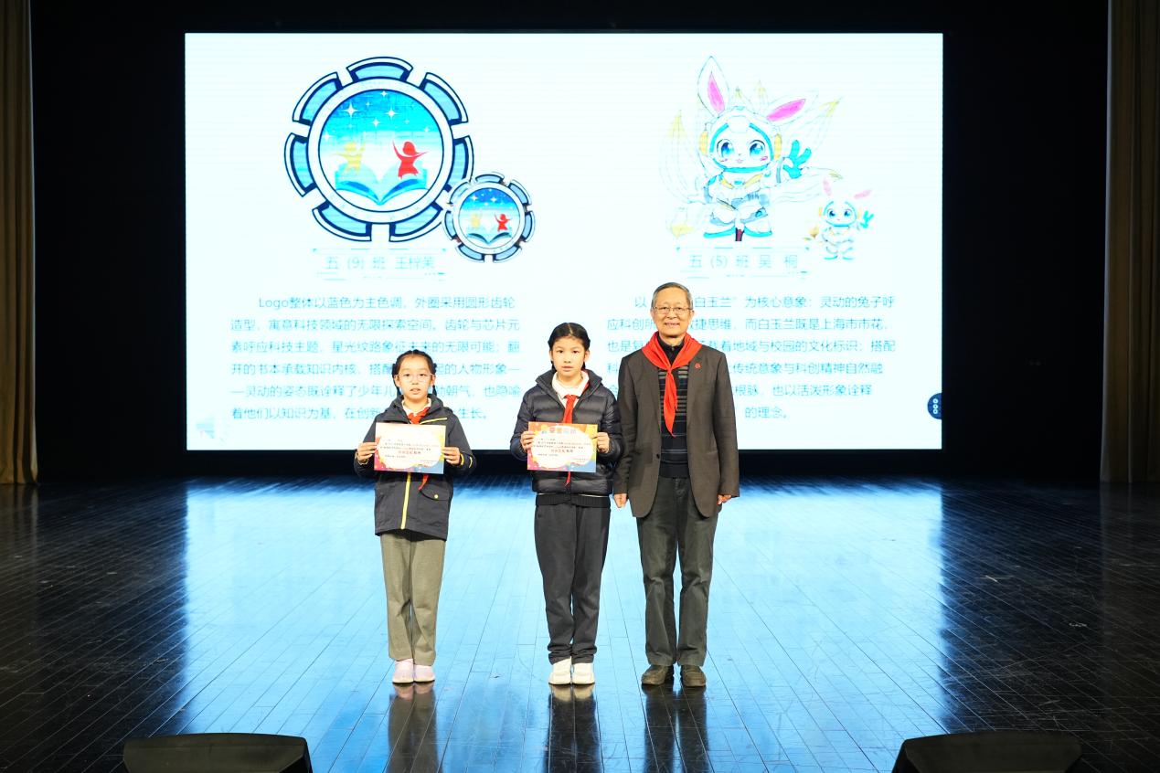 活动首先揭晓了本次科学教育月的Logo与吉祥物。经过广泛征集与层层遴选,五(9)班王梓茉同学设计的主题Logo与五(5)班吴桐同学创作的吉祥物“玉兰兔”脱颖而出。