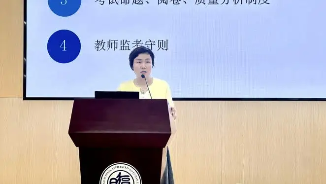 教务处副主任任蓓华老师和朱燕敏老师分别从学校教学工作的基本要求以及课堂教学的规范两方面进行了具体培训,详细介绍了教学五环节——备课、上课、作业、辅导与评价的具体管理制度,强调了“双新”背景下以核心素养为导向推进单元整体备课的要求,并明确了听评课、命题阅卷及质量分析等常规工作的规范要求,助力新进教师迅速适应学校教学工作,提升教学实效。