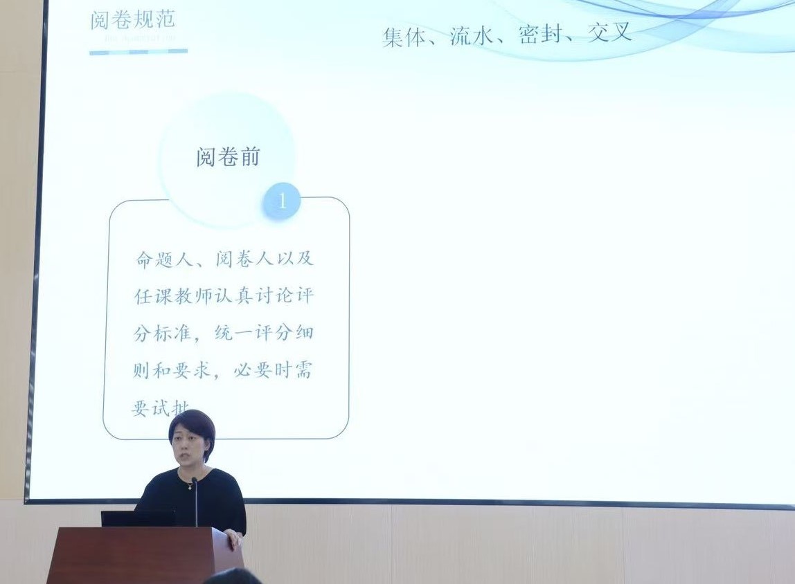 学校党政办主任吕步云老师就人事管理及考核评价制度作了详细说明,明确了教职工的工作时间安排、年度考核内容及师德“十条红线”,强调教育教学工作的规范流程,帮助新进教师清晰把握工作方向。