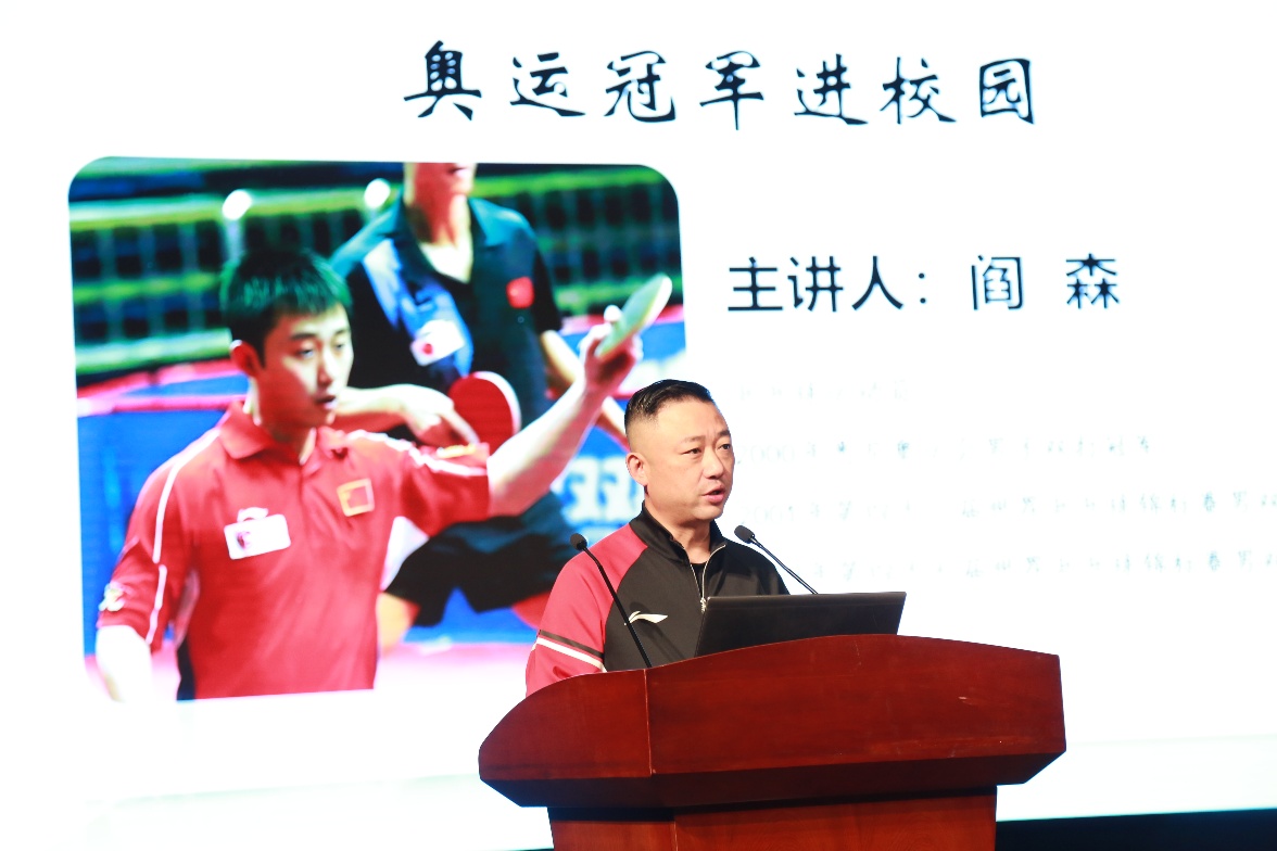 2025年10月24日上午,奥运会乒乓球男双冠军、世界冠军阎森走进复旦大学第二附属学校校园,为六年级全体学生带来了一场题为“拼搏与梦想”的励志演讲。
