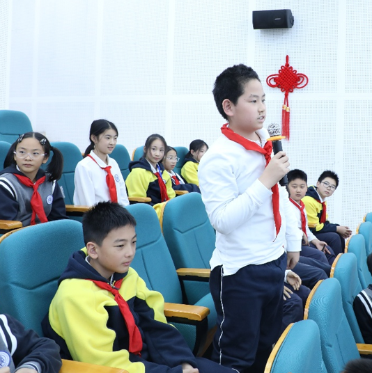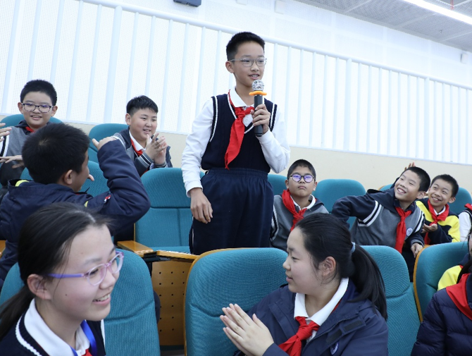 互动环节气氛热烈,六年级学子展现出浓厚的探究热情。有学生主动提出对PPT中部分技术细节的疑问,精准指向自己未听懂的内容;另有学生聚焦核心知识点,追问聚合物材料的具体性质及应用场景。面对同学们的提问,杨振国教授始终耐心细致,用贴近校园学习的视角拆解复杂概念,结合生活中常见的聚合物制品举例说明,既逐一回应了疑问,又引导学生建立“从现象到本质”的思考逻辑,让互动环节成为知识深化的重要载体。