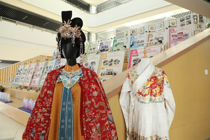 工艺与设计类成果则融传统与生活于一体:陶艺作品以十二生肖为主题,从揉泥到烧制,凝结手与土的对话;木工作品结构严谨、打磨细腻,兼顾实用与美感;迷你汉服一针一线缝制而成,配以形制说明,让“服章之美”可触可感;《小复旦人报》由学生自主采编,记录课程点滴与成长思考,成为跨学科实践的重要载体。