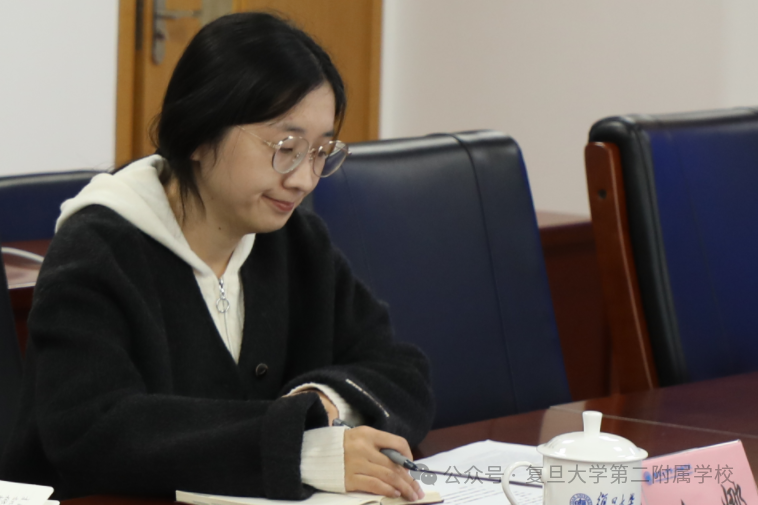 会议伊始,宋正清副主任系统介绍了“复旦哲学进中学”项目的来路与初衷。为助力中学生哲学思维启蒙、精神成长,复旦大学哲学学院高度重视大中小一体化人才培养机制,构建专业团队,持续将优质的哲学内容输送至中学课堂,目前已在14所中学授课160余次,覆盖5000余人次。紧接着,她着重介绍了复旦大学哲学学院与复旦二附校合作的“智与思”哲学课程,课程设计紧扣初中生思维特点,包含哲学导论、逻辑学、伦理学、政治哲学、中国哲学等多个模块以逐步培养学生的哲学素养;讲师团队则通过传帮带、跟课、两轮试讲等机制确保每一节课的教学质量。