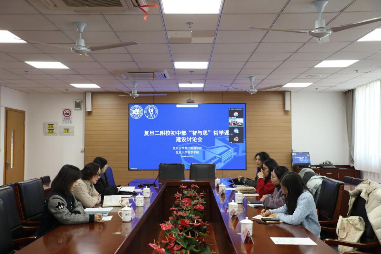 2026年1月12日下午,一场围绕初中部“智与思”哲学课程建设的讨论会在复旦二附校如期举行。复旦二附校党总支书记彭松,复旦大学哲学学院党委副书记汤克凤、学生办公室副主任宋正清,复旦二附校“智与思”哲学课程负责教师张海燕、陈娜,复旦大学哲学学院“复旦哲学进中学”讲师团张晓琪、黄展扬、田晓韵、王婷、丁垲围桌共话,探讨如何让哲学在中学校园的土壤中扎根生长。