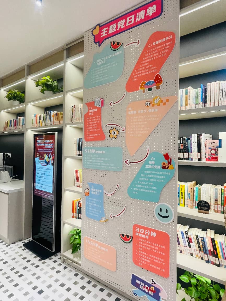 最后一站,老师们来到新江湾城街道“新·尚党群服务站”。这座集“兴阅馆”与“星秀场”于一体的党建“会客厅”,通过阅读空间、艺术展览、行业沙龙等多元形式,构建起“街校企”联动的党建共同体,实现从满足个体需求到深度链接社区治理的跨越升级。大家详细了解了服务站全年近60场活动计划,皮划艇交流、咖啡课、私董会等创新形式令人耳目一新。