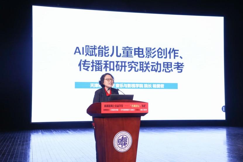 随后,杨爱君老师围绕《AI赋能儿童电影的创作、传播和研究联动思考》,深入剖析了人工智能如何重塑影视创作的生态。她指出,AI并非要取代艺术家,而是打破了电影制作的神秘感。杨老师鼓励同学们利用身边的智能设备大胆尝试创作,将镜头对准日常生活,积极参与各类影展活动。在她看来,每一次动手拍摄都是媒介素养的积累,希望同学们能驾驭技术,在人机协同中寻找新的艺术表达。