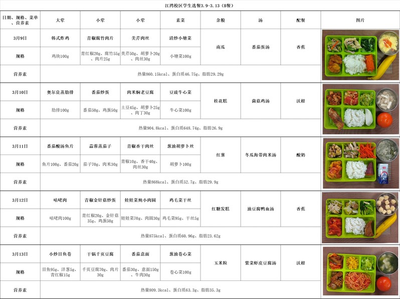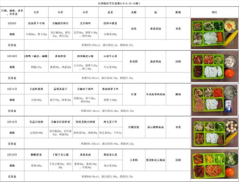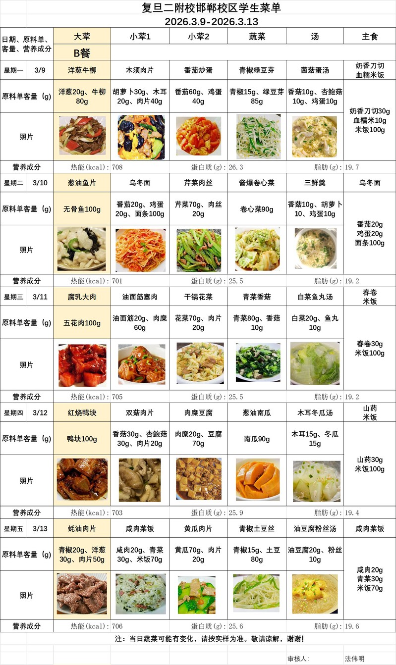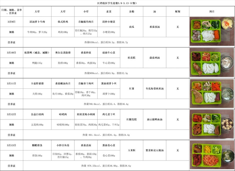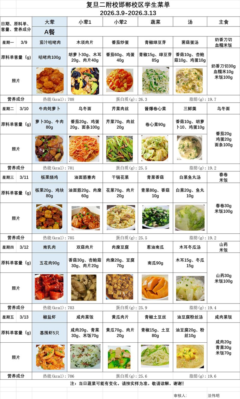 2025学年第二学期第2周菜单(20260309-20260313)