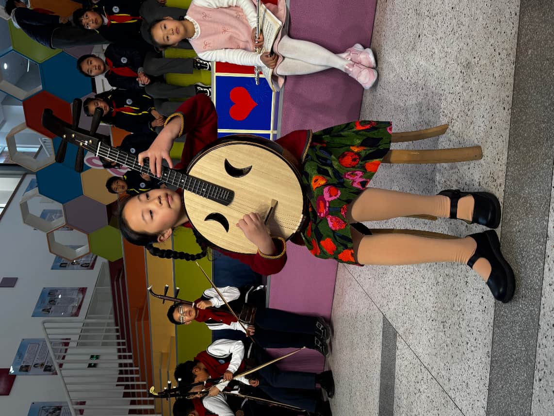 能和小伙伴们一起登上彩虹小舞台,参与二胡合奏《赛马》,我既激动又倍感荣幸。上台前,我们互相鼓励、默契配合,把紧张化作了力量,带着满满的自信完成了演出。这个小小的舞台,不仅让我们展示了民乐风采,更让我在合作中收获成长。愿以琴声为媒,做传统文化的传承者,弘扬者。