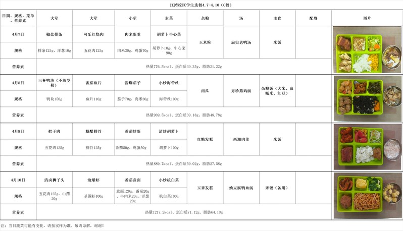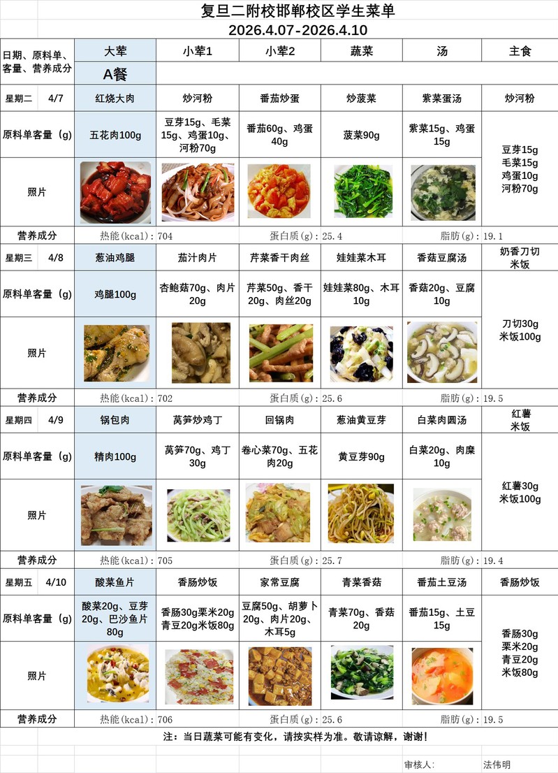 2025学年第二学期第6周菜单(20260407-20260410)